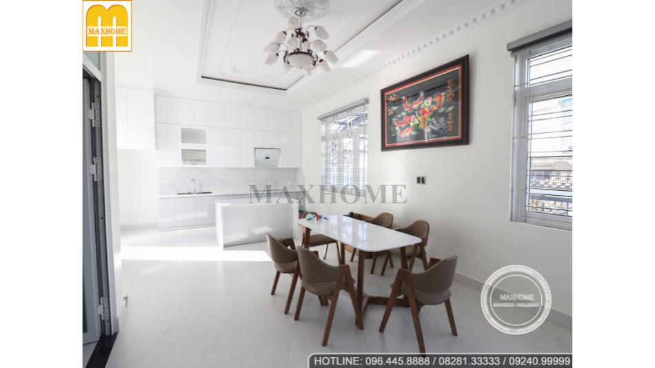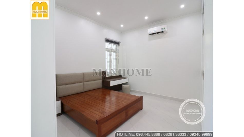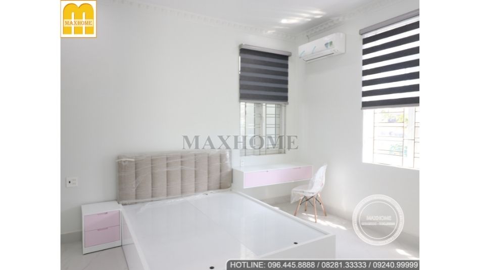 Căn biệt thự nhà anh Nam sở hữu hình khối vuông vức kết hợp với hệ mái Nhật bên trên đã thể hiện được vẻ đẹp đăng đối, hài hòa. Những bức tường được trang trí đơn giản, trát phẳng cùng với các chi tiết gờ phào đắp xi măng, sơn phủ màu trắng ôm lấy cột, tường và cửa.