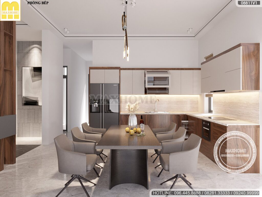 Gia chủ nên thiết kế tránh các góc nhọn chiếu góc vào khu vực nấu vì theo phong thủy, nó có thể làm mất đi sự hòa thuận trong gia đình.
