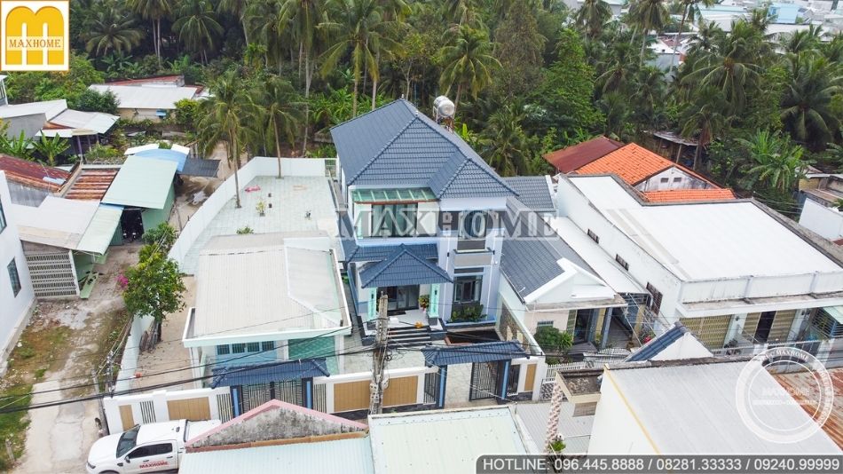 Tham quan thực tế mẫu nhà mái Nhật 2 tầng cực kỳ sang trọng và hiện đại tại Tiền Giang. Ấn tượng đầu tiên khi nhìn vào căn nhà này chắc chắn là màu sắc sơn độc đáo, mang nét vui tươi và thể hiện một phần nào đó tính cách của chủ nhân ngôi nhà này.