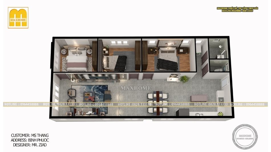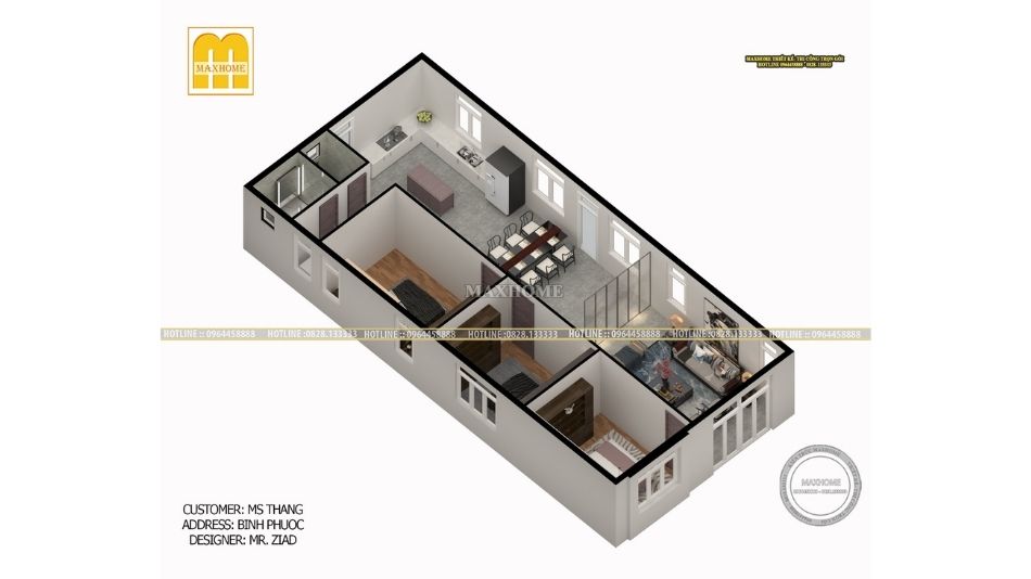 | Địa chỉ: Thành Tâm, Chơn Thành, Bình Phước | Diện tích xây dựng: 7,5 x 20,3m |