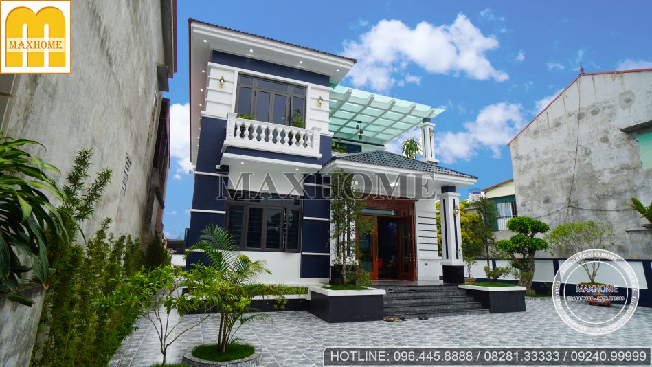 Ngôi nhà được thiết kế theo phong cách hiện đại mang lại sự trẻ trung, năng động mà cũng không kém phần sang trọng, tinh tế. Phần mái được thiết kế theo kiểu mái Nhật, xuất phát từ đất nước hoa anh đào nổi tiếng. Hiện nay, mái Nhật màu xanh dương đang ngày càng phổ biến nhờ sự thanh lịch mà nó mang lại cho căn nhà.