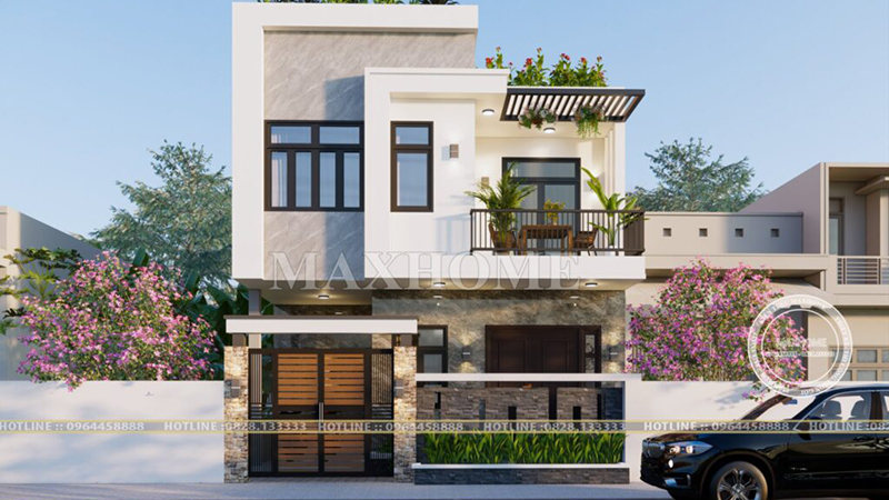 Mẫu nhà ống trở nên cao thoáng, đẹp mắt hơn nhờ sự hiện diện của tầng tum