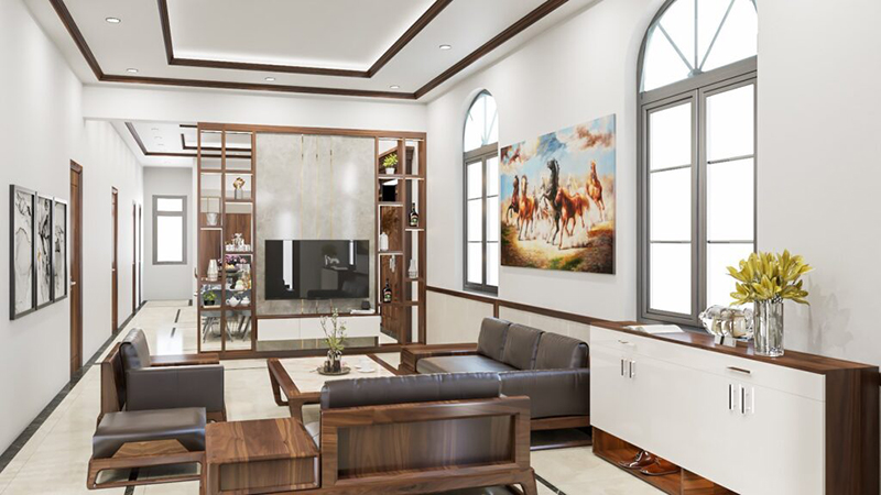 Nếu không gian phòng khách có diện tích trên 15m2, thì gia chủ nên chọn gạch lát nền kích thước 40 x 40 cm hoặc 50 x 50 cm, là những kích thước trung bình. Sự hài hòa giữa kích thước gạch với diện tích phòng sẽ tạo nên nét tinh tế cho không gian. Việc chọn được gạch phù hợp cũng hạn chế các đường vữa mạch, giúp quá trình thi công và lau chùi dễ dàng hơn.